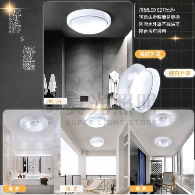 好更換 E27浴室陽台吸頂燈 雙燈款 防潑水 防眩光 防蟲 純白外罩 / 透明條紋外罩 LED E27燈泡 ×2