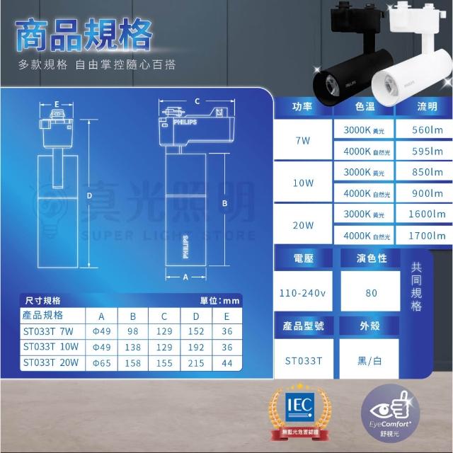 Philips 飛利浦新款 PHILIPS 飛利浦 LED 軌道燈 ST033T 7W 10W 20W LED軌道投射燈 全電壓 展場燈