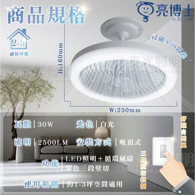 亮博士亮博士 LED 30W 萬向吸頂燈扇|3段壁切×3種特色功能|IP20 防塵防水 2-3 坪適用 燈扇 一機兩用 省電
