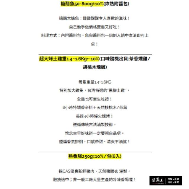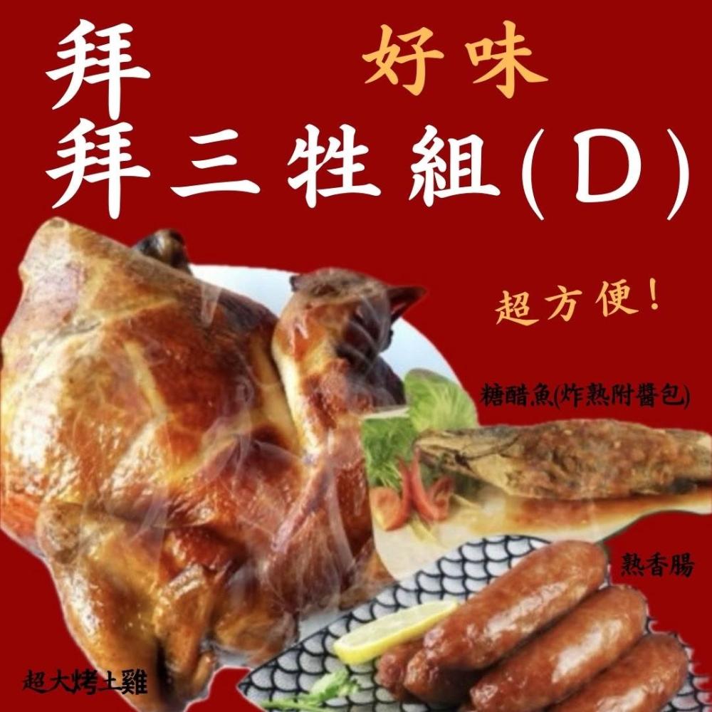 三牲D組 糖醋魚(炸熟附醬包) +超大烤土雞+熟香腸