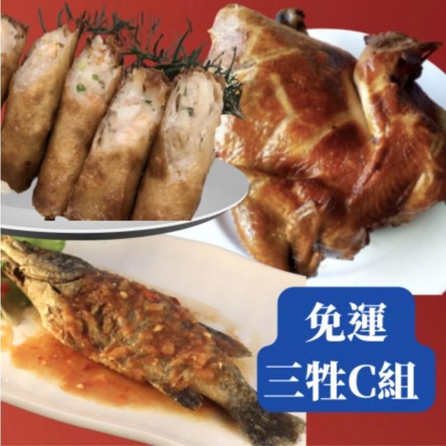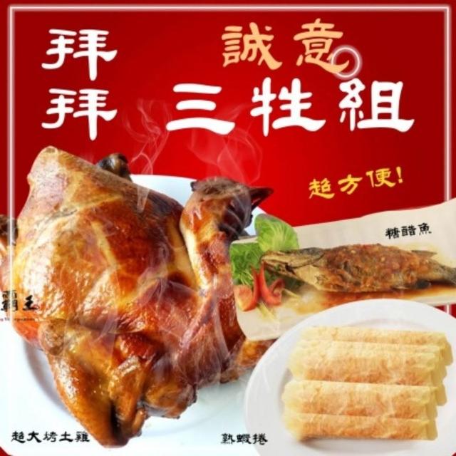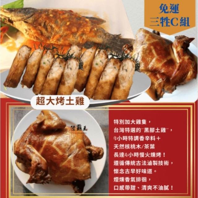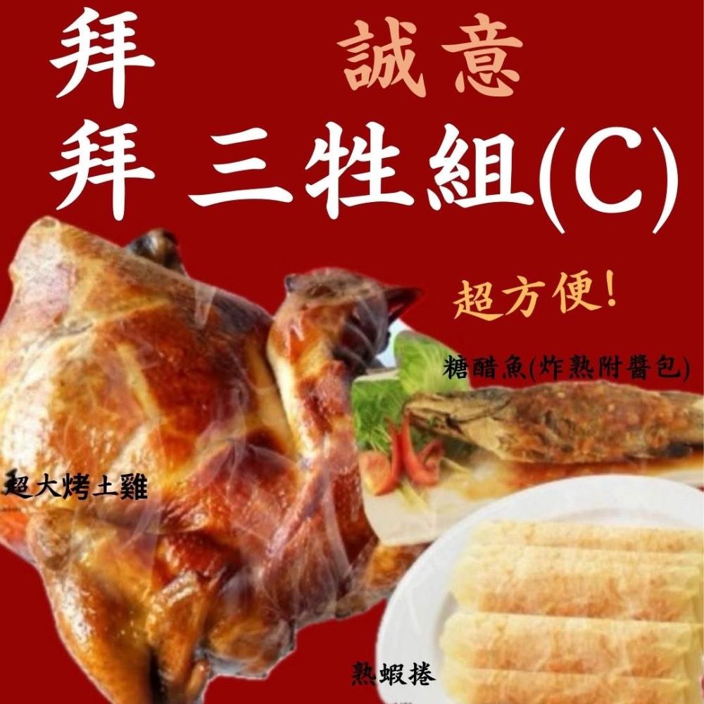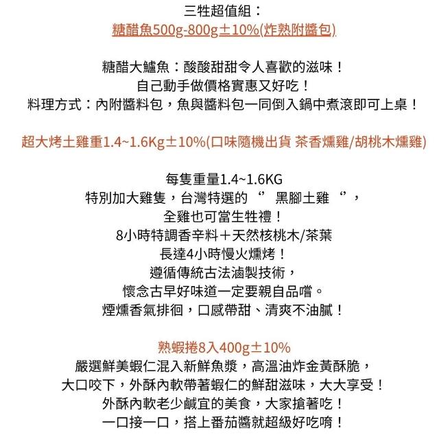 三牲C組 糖醋魚(炸熟附醬包) +超大烤土雞重+ 熟蝦捲8入
