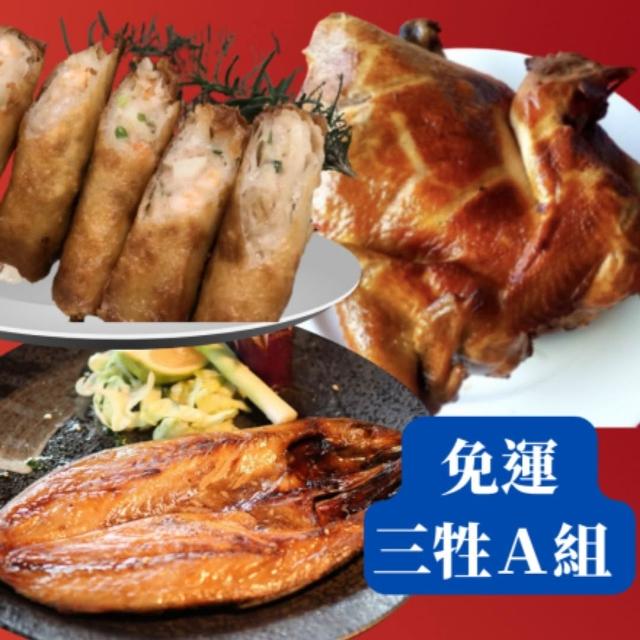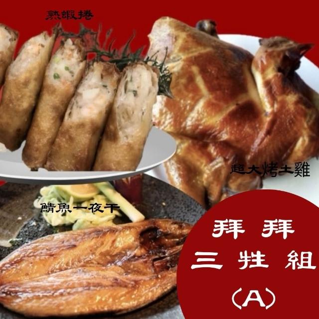 三牲A組-鯖魚一夜干+超大烤土雞重+熟蝦捲8入