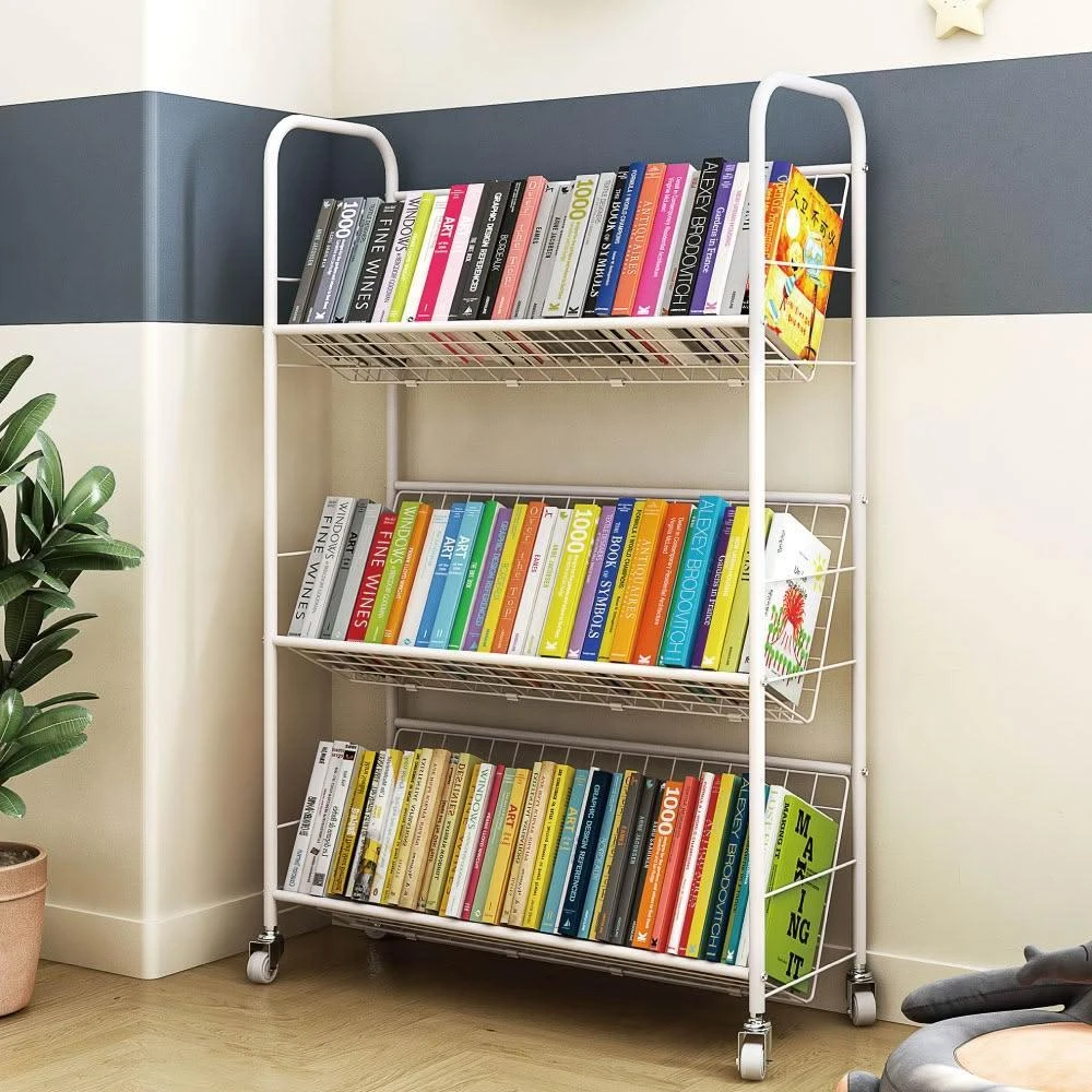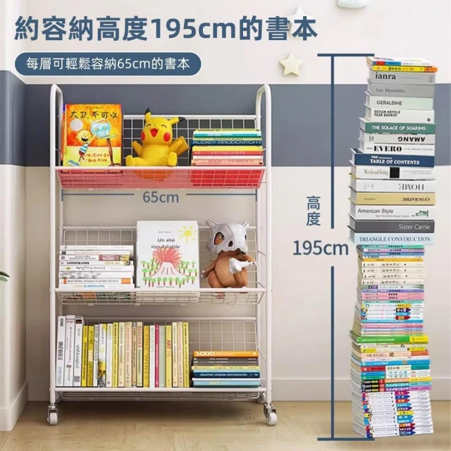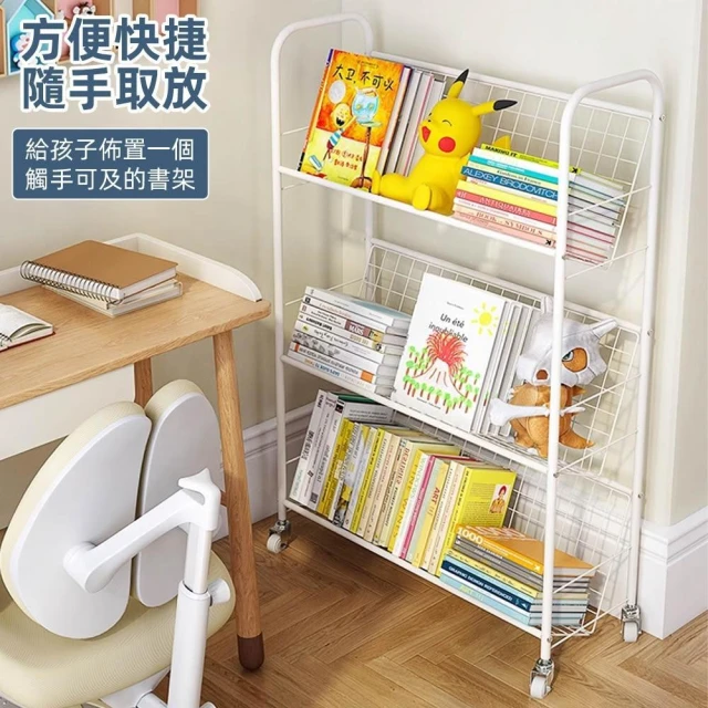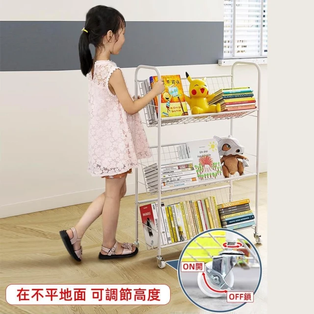 慢慢家居奶油風超穩固可移動鐵藝書架(文件推車 兒童書架 移動書櫃 置物架)