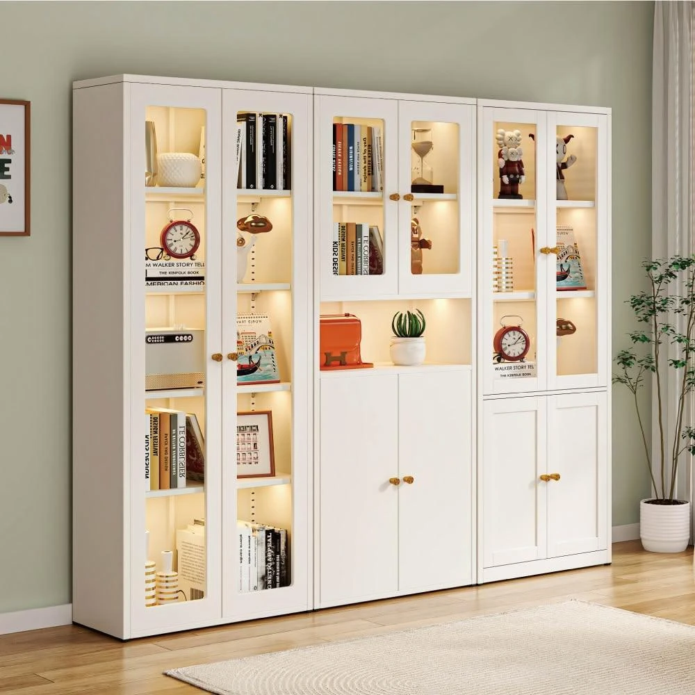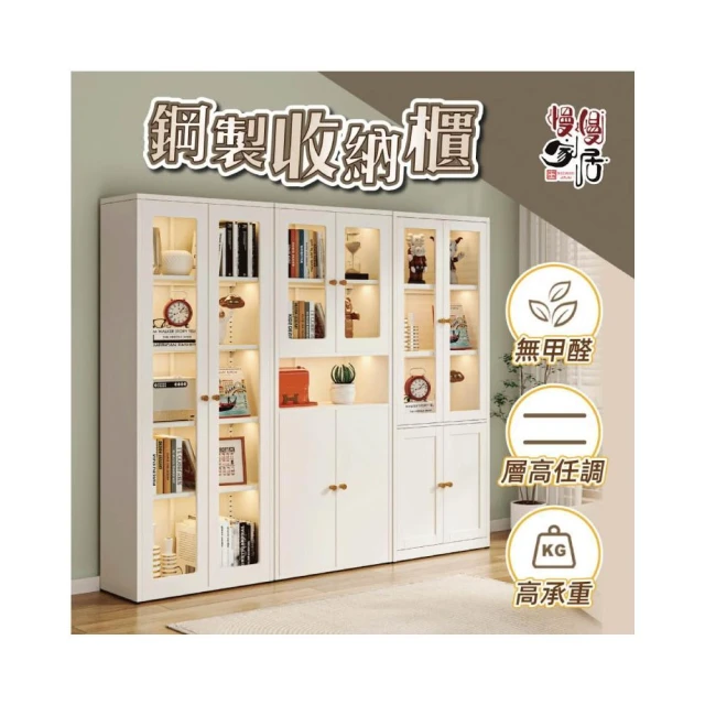 慢慢家居全碳鋼超耐重現代簡約收納櫃展示櫃書櫃(展示櫃 書櫃 泡泡瑪特 儲物櫃 鋼化玻璃門)