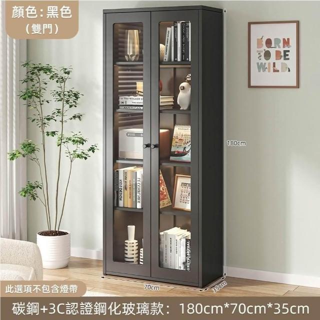 慢慢家居全碳鋼超耐重現代簡約收納櫃展示櫃書櫃(展示櫃 書櫃 POPMART泡泡瑪特 儲物櫃 鋼化玻璃門)