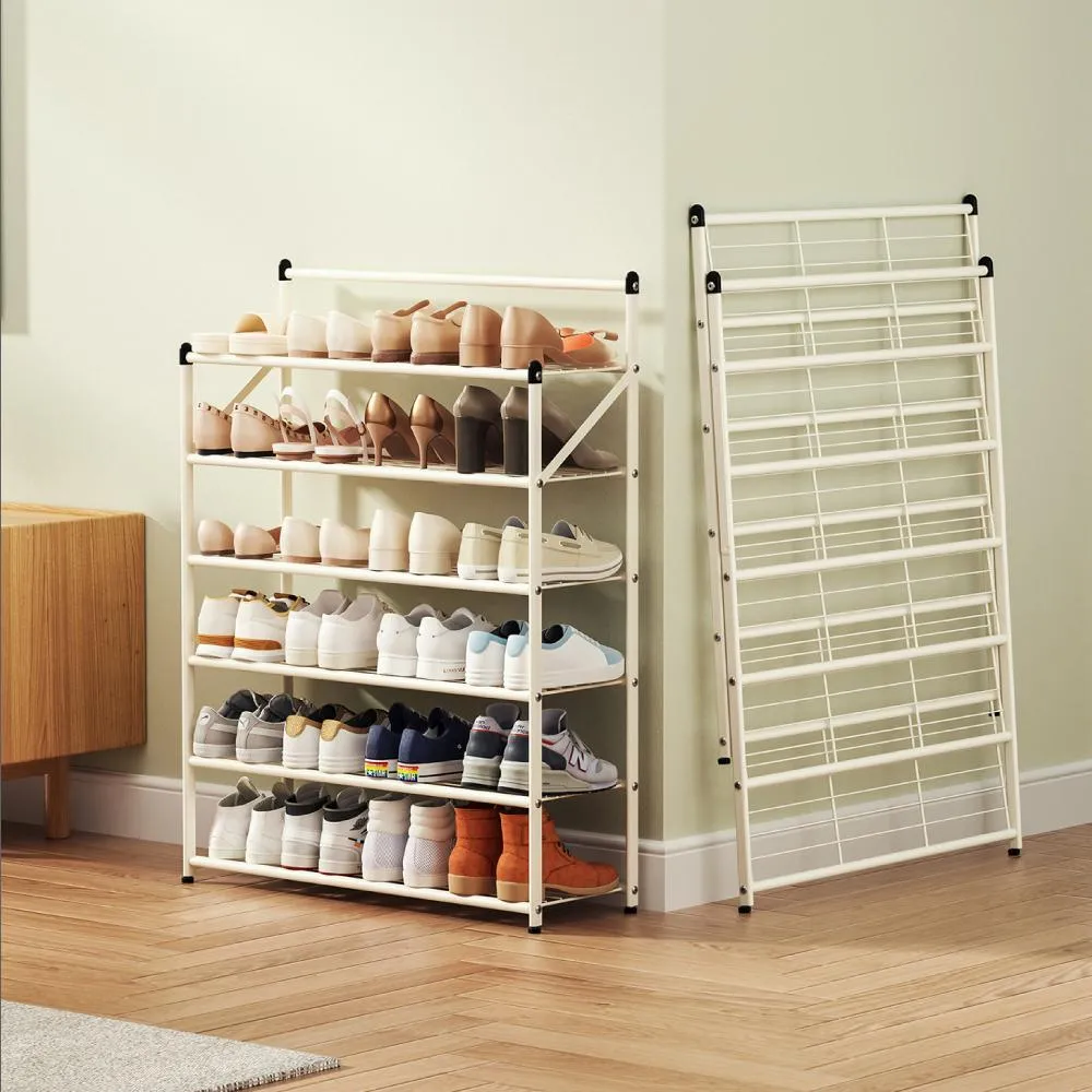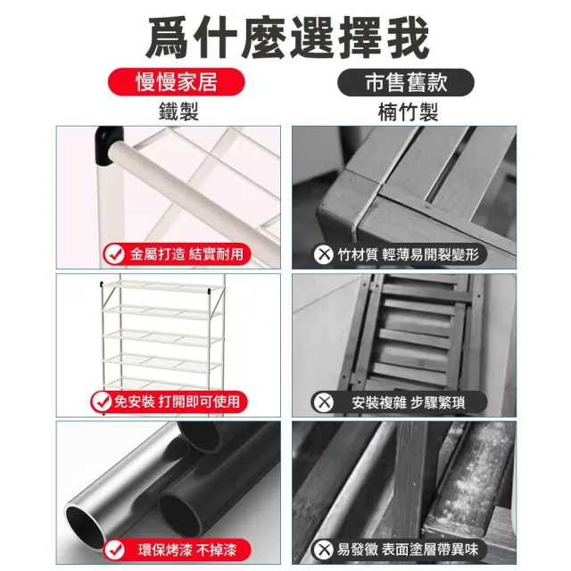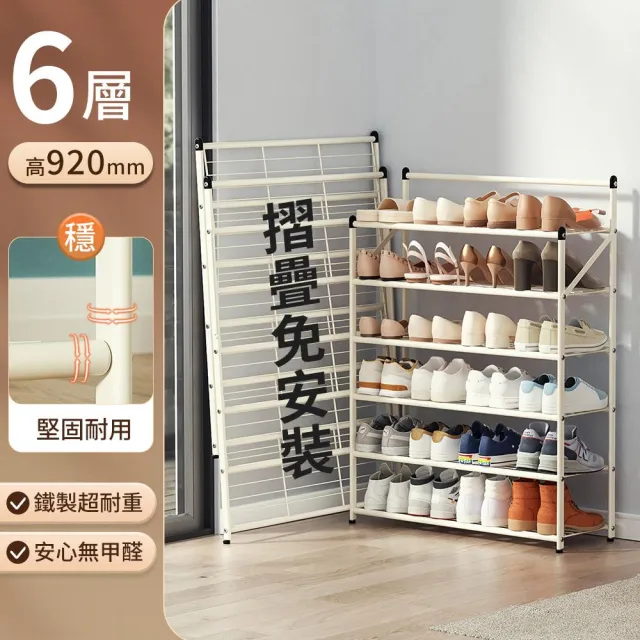 慢慢家居鐵製免安裝-六層折疊鞋架 面寬69.5公分(免安裝鞋架 簡易鞋架 鞋櫃)