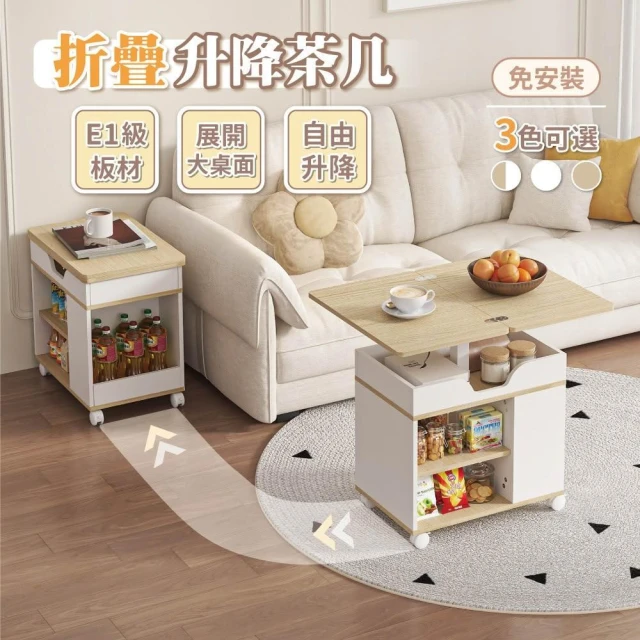 慢慢家居免組裝-桌面可展開可移動氣壓式無段升降茶几 邊桌 邊几 (SGS低甲醛 餐桌 升降桌)