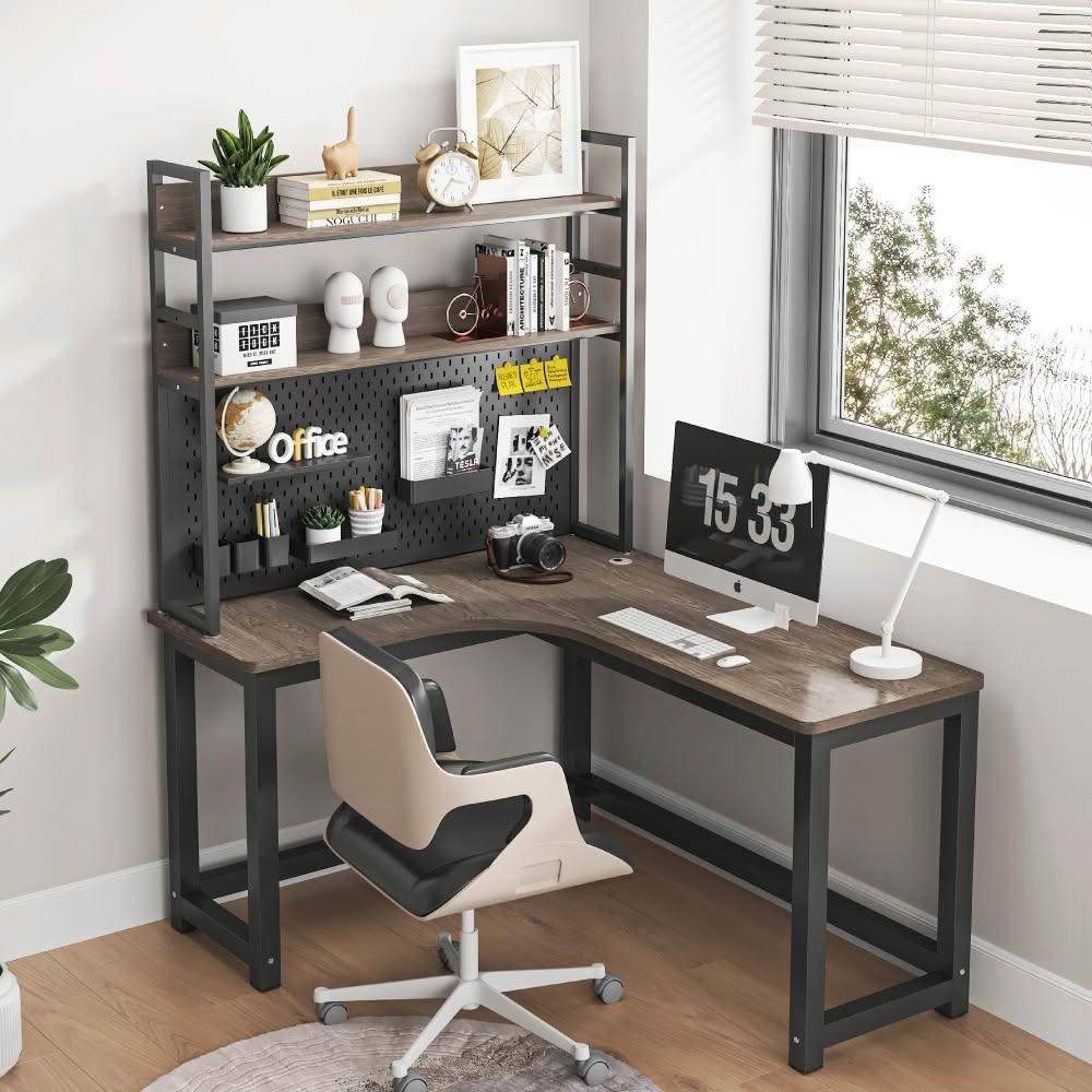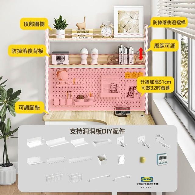 慢慢家居獨家款-現代簡約L型轉角書桌書架組 洞洞板桌面置物架140x120cm 電腦桌 辦公桌