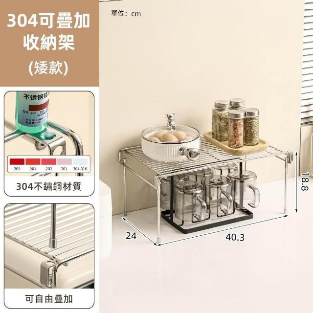慢慢家居304不鏽鋼-多功能可疊加分層收納架置物架 (矮款)