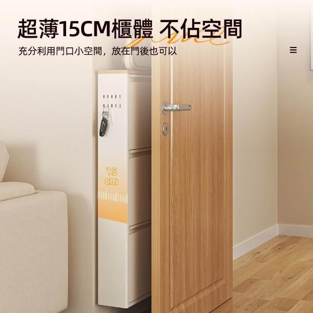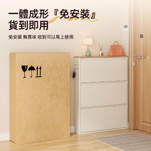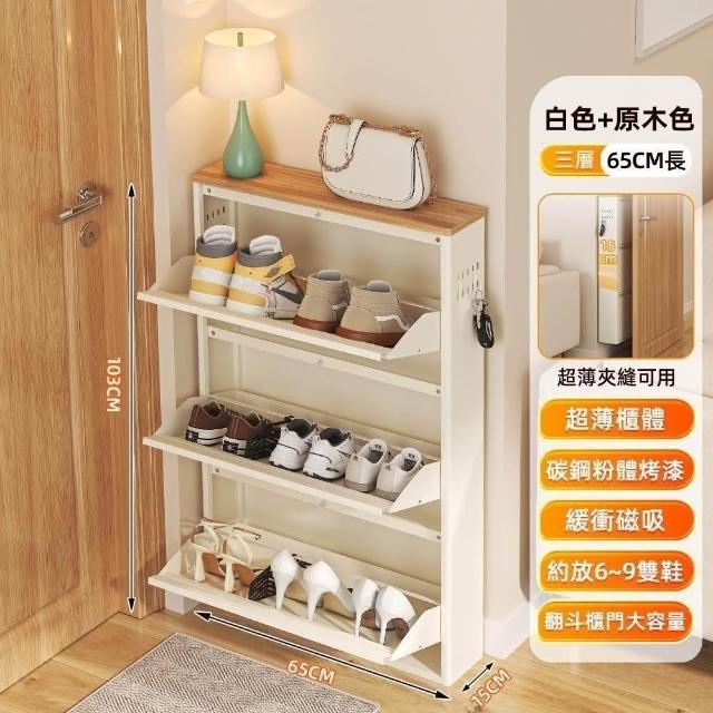慢慢家居免安裝木頂超薄翻斗鋼製鞋櫃-65面寬 (三層鞋櫃 拉門鞋櫃 收納鞋櫃 鞋架)
