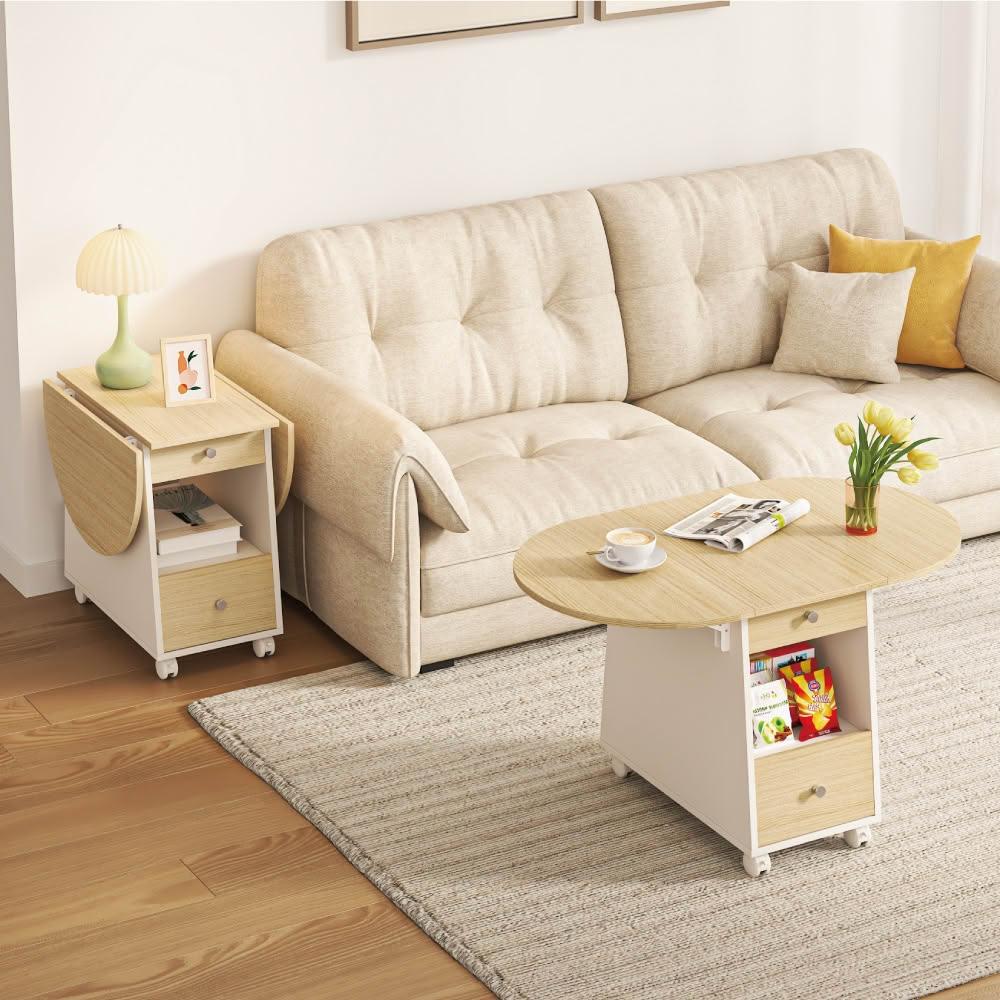 慢慢家居免組裝-桌面可展開帶輪移動茶几 沙發邊桌 邊几 (SGS低甲醛 蝴蝶桌 餐桌)