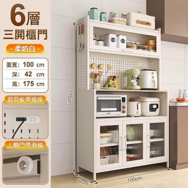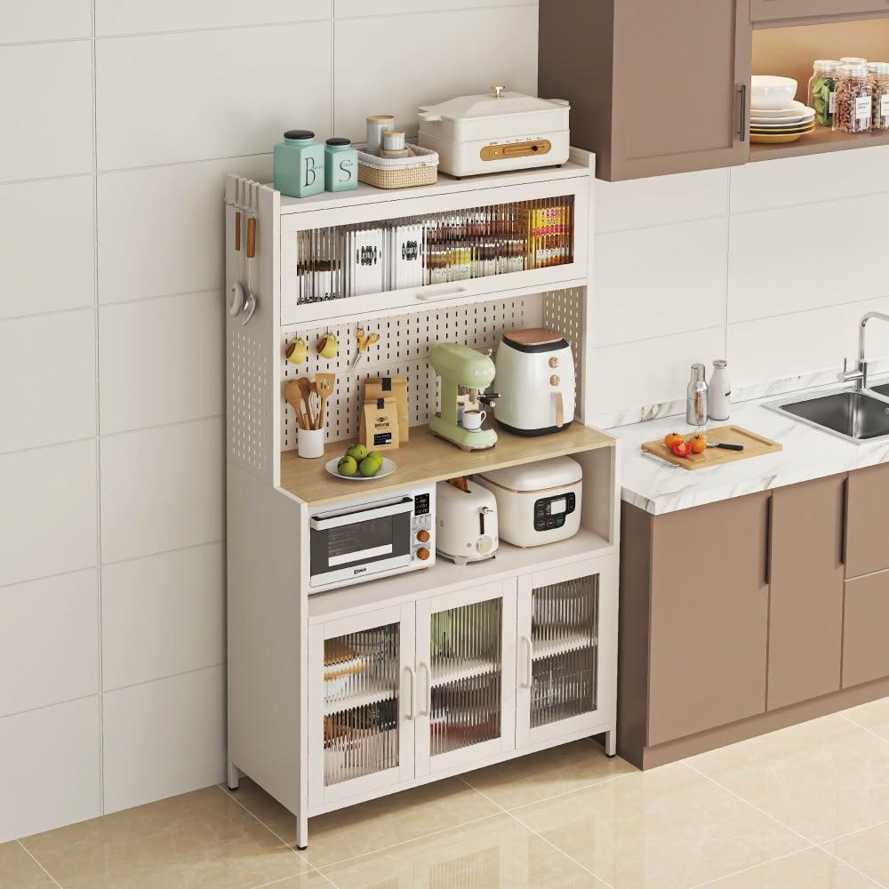 慢慢家居升級長虹玻璃-廚房大容量帶插座洞洞板櫥櫃電器櫃-100cm(餐廚櫃 置物櫃 廚房收納 儲物櫃 餐邊櫃)