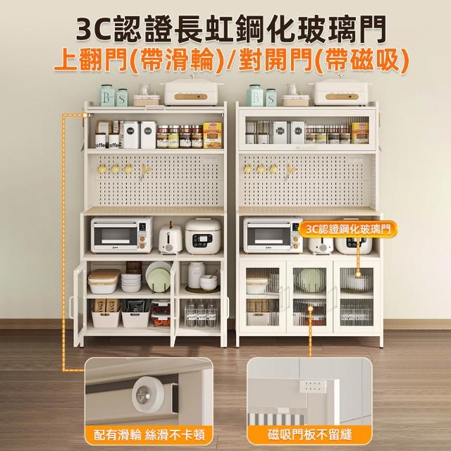 慢慢家居升級長虹玻璃-廚房大容量帶插座洞洞板櫥櫃電器櫃-100cm(餐廚櫃 置物櫃 廚房收納 儲物櫃 餐邊櫃)