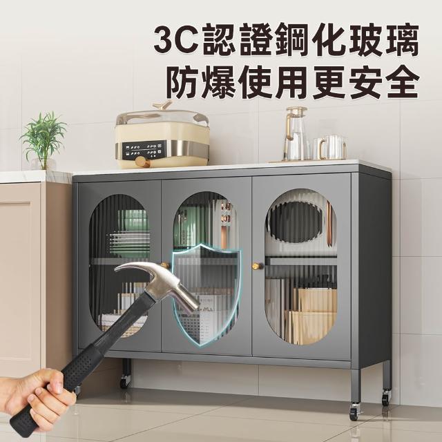 慢慢家居長虹玻璃門-岩板對開門鋼製餐廚櫃-120x42cm(餐櫃 餐邊櫃 電器櫃 廚房收納 收納櫃 廚房置物櫃)