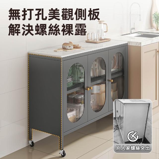慢慢家居長虹玻璃門-岩板對開門鋼製餐廚櫃-120x42cm(餐櫃 餐邊櫃 電器櫃 廚房收納 收納櫃 廚房置物櫃)