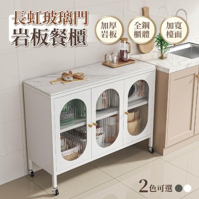 慢慢家居長虹玻璃門-岩板對開門鋼製餐廚櫃-120x42cm(餐櫃 餐邊櫃 電器櫃 廚房收納 收納櫃 廚房置物櫃)