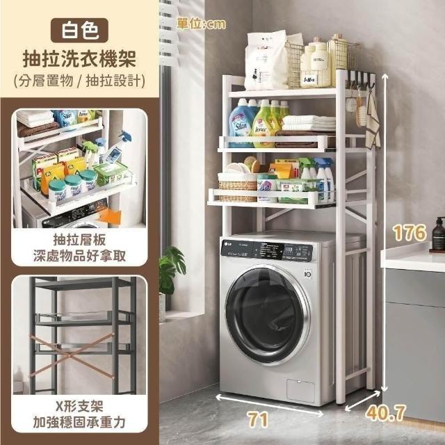 慢慢家居可抽拉層板超耐重三層洗衣機架 (置物架 浴室層架 馬桶架)
