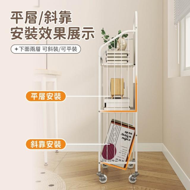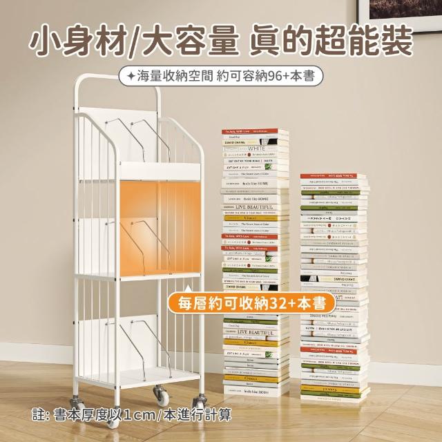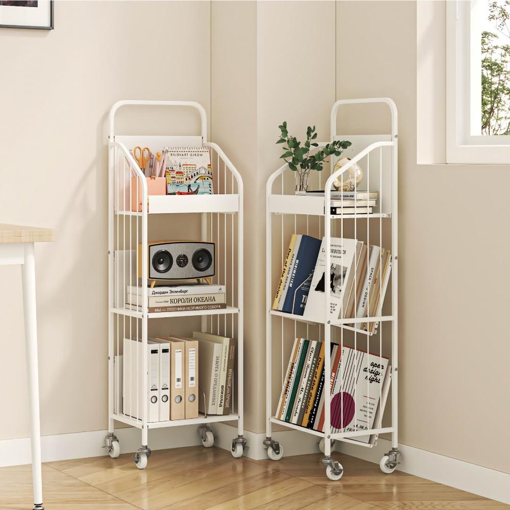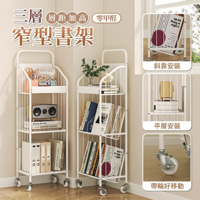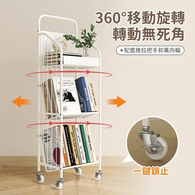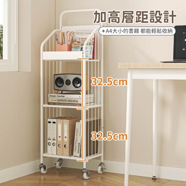 慢慢家居升級層板-奶油風帶把手可移動鐵藝窄型三層書架(文件推車 兒童書架 移動書櫃 置物架)
