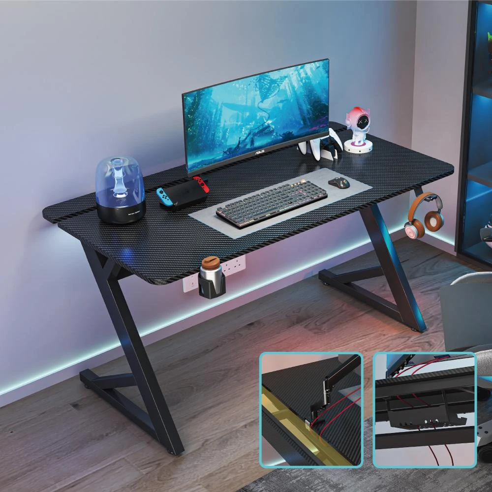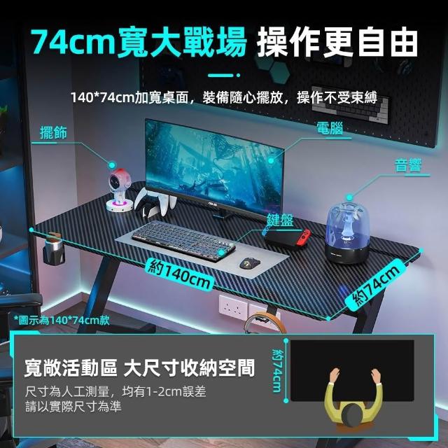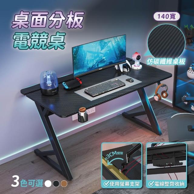 慢慢家居仿碳纖維Z型桌腿電競桌-140x74x75 掀板理線槽 裝螢幕支架可靠牆 (電腦桌/書桌/工作桌)