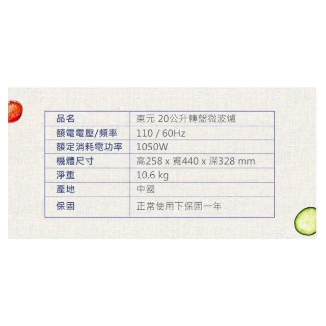 TECO 東元20L機械式微波爐 YM2006CB