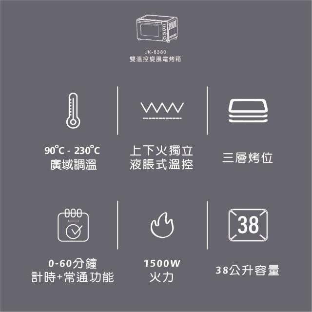 晶工牌38L雙溫控旋風電烤箱JK-8380/可烤全雞
