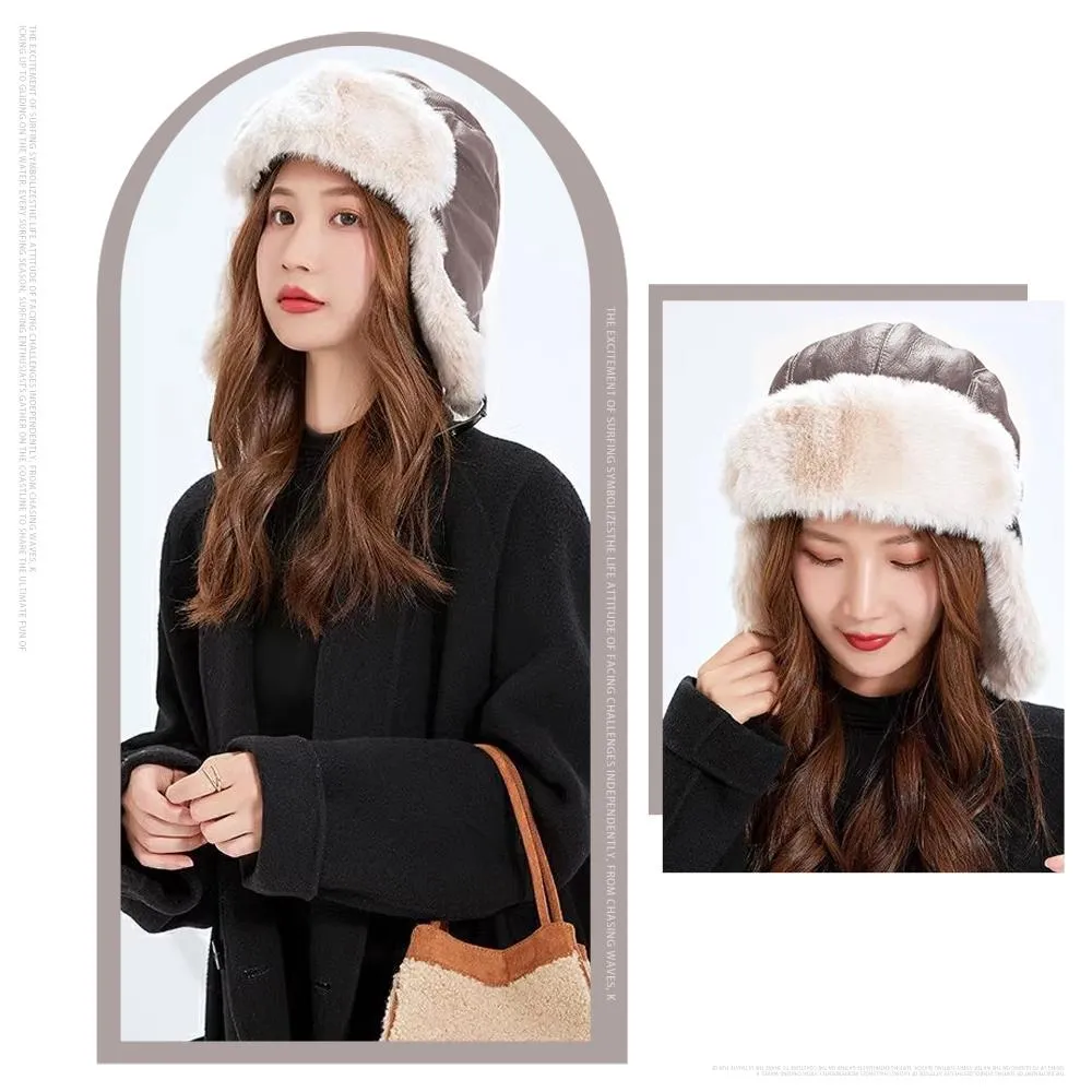 DAYOU護耳飛行帽 雷鋒帽 保暖帽 仿貂毛 PU皮革 機車保暖 冬季穿搭 賞雪 出國必備 D0304028