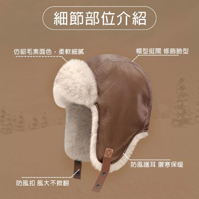 DAYOU護耳飛行帽 雷鋒帽 保暖帽 仿貂毛 PU皮革 機車保暖 冬季穿搭 賞雪 出國必備 D0304028