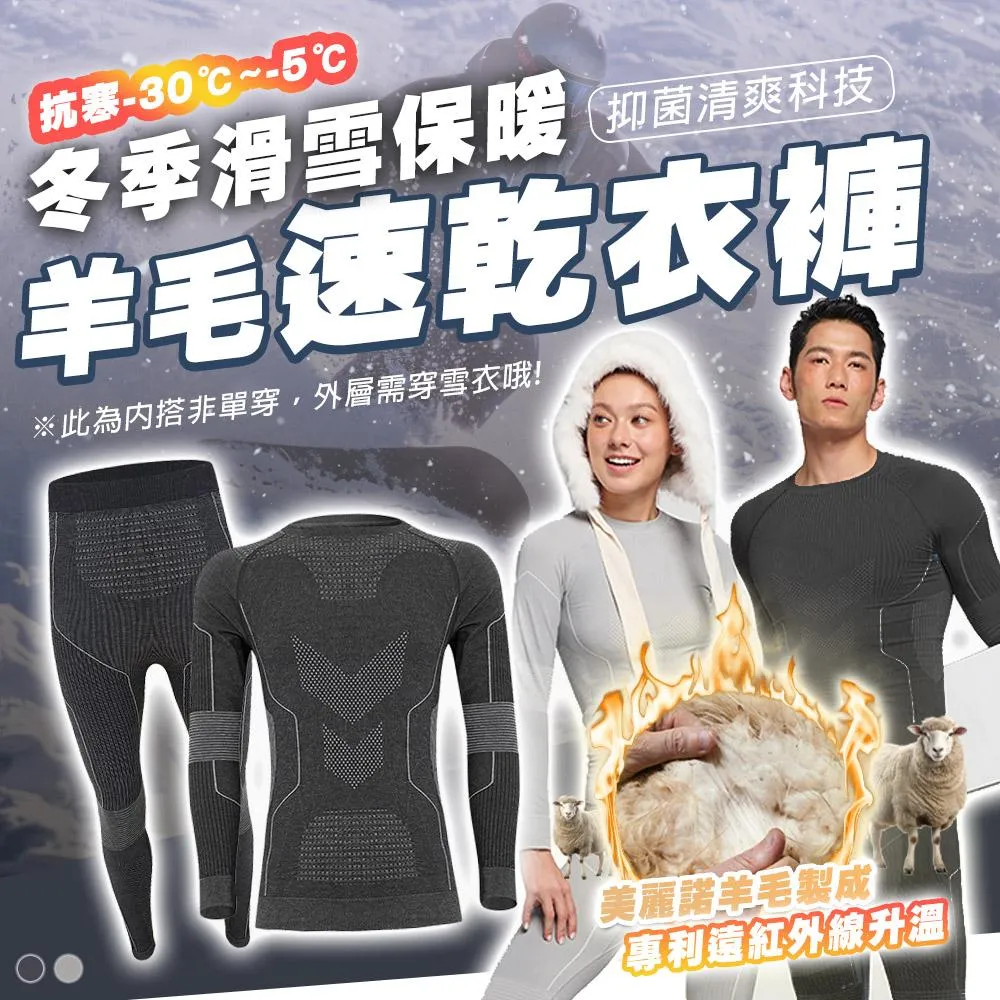 DAYOU羊毛滑雪速乾衣褲組 保暖羊毛 紅外線專利 壓縮力強 緊身排汗 高彈力 透氣快乾 滑雪 D0300021