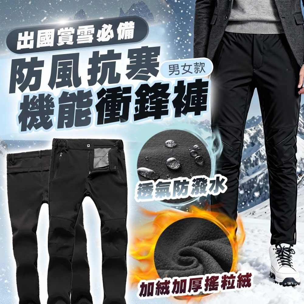 防潑水加絨保暖衝鋒褲