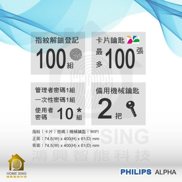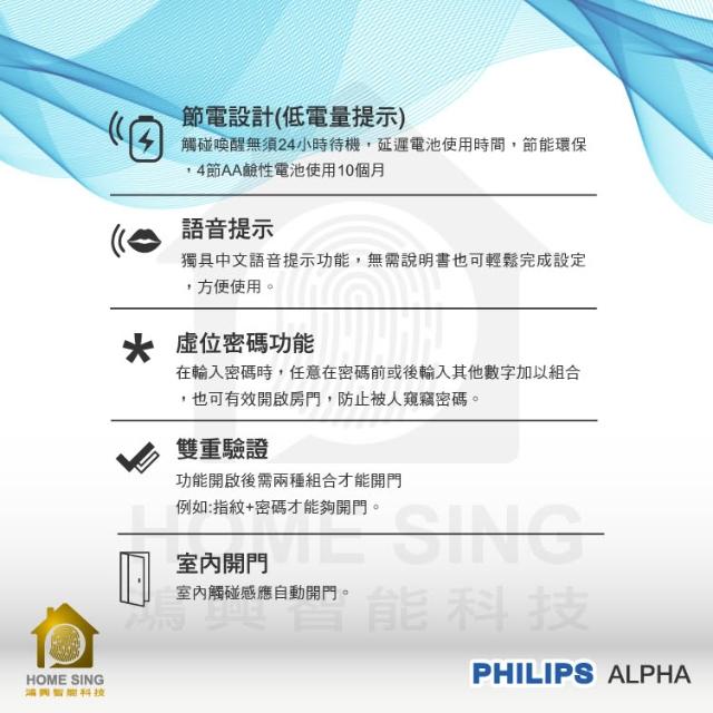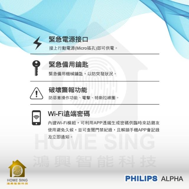 Philips 飛利浦公司貨 EasyKey ALPHA 電子鎖 電子門鎖 指紋 卡片 密碼 鑰匙 WIFI(含基本安裝) 飛利埔
