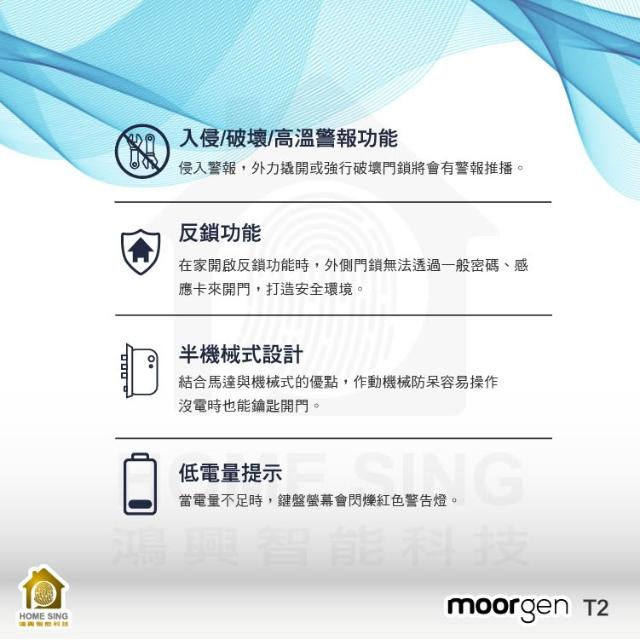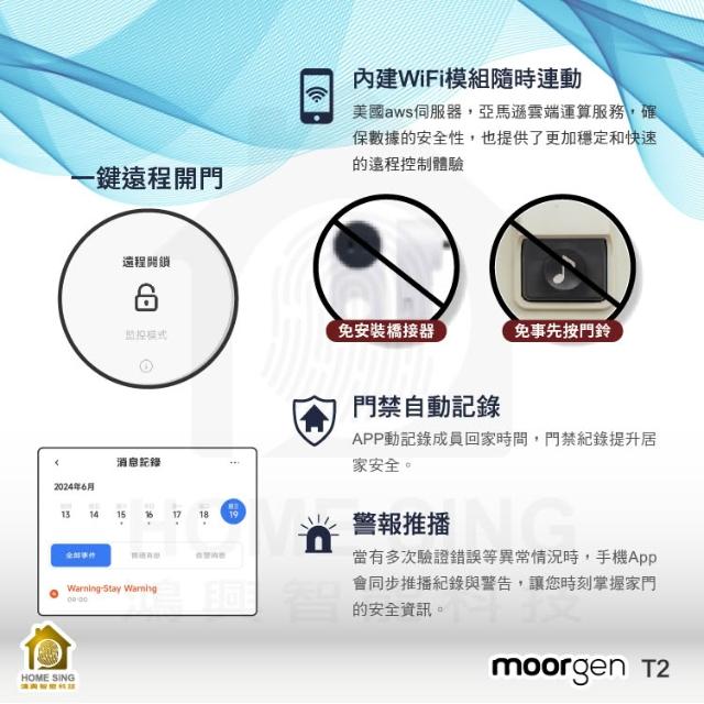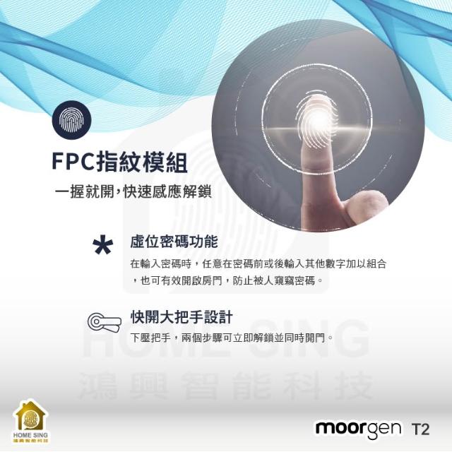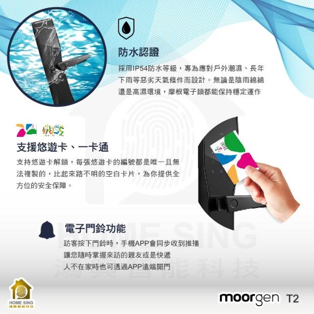 moorgen德國摩根moorgen美型電子鎖T2七合一 指紋/卡片/密碼/鑰匙/時效密碼/遠端/門鈴(含基本安裝)