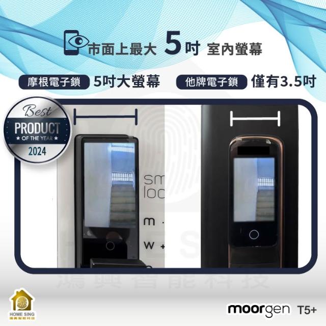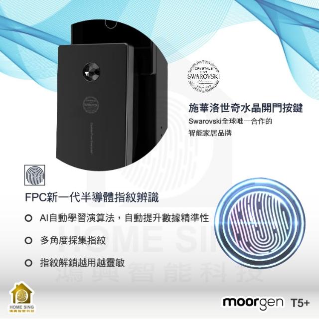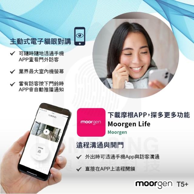 moorgen德國摩根moorgen 美型電子鎖T5+雲母黑/人臉辨識/掌靜脈/貓眼螢幕/門鈴/卡片/指紋/密碼/遠端(含基本安裝)