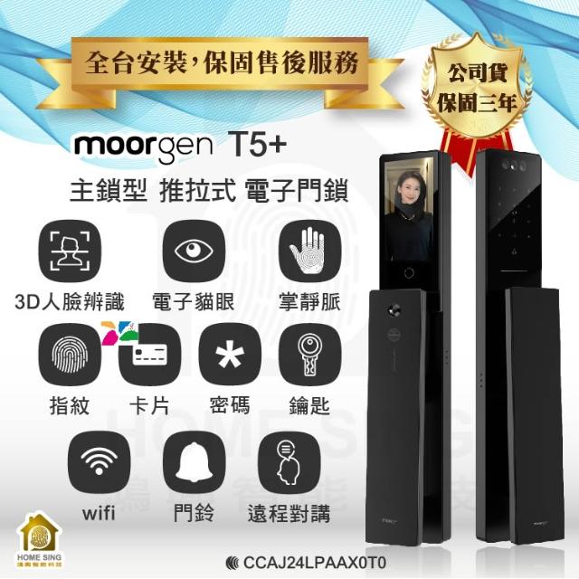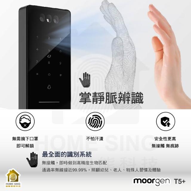 moorgen德國摩根moorgen 美型電子鎖T5+雲母黑/人臉辨識/掌靜脈/貓眼螢幕/門鈴/卡片/指紋/密碼/遠端(含基本安裝)