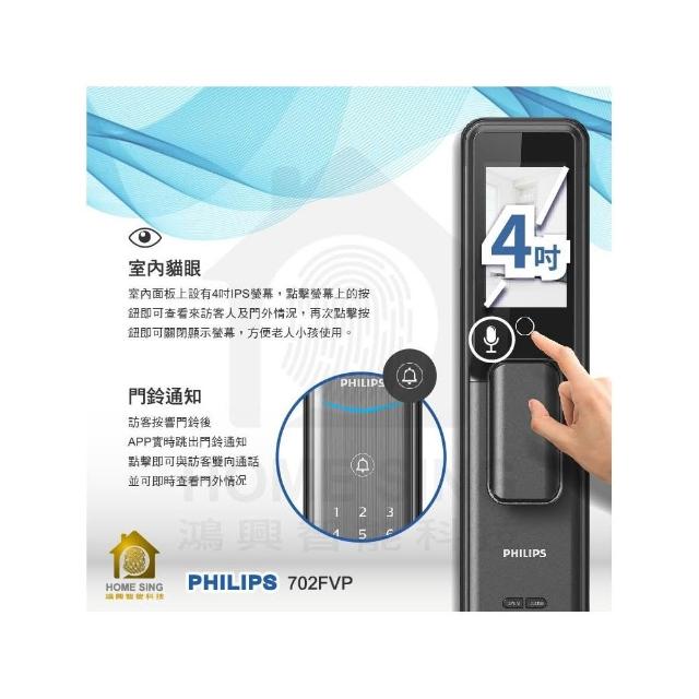 Philips 飛利浦DDL702-FVP 人臉辨識 貓眼 指紋 卡片 密碼 鑰匙 遠端 電子鎖 含基本安裝 原廠公司貨