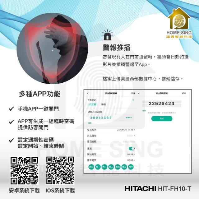 HITACHI 日立日立HITACHI 含安裝 HIT-FH10-T悅 人臉辨識/掌靜脈/電子貓眼/指紋/卡片/密碼/鑰匙/遠端