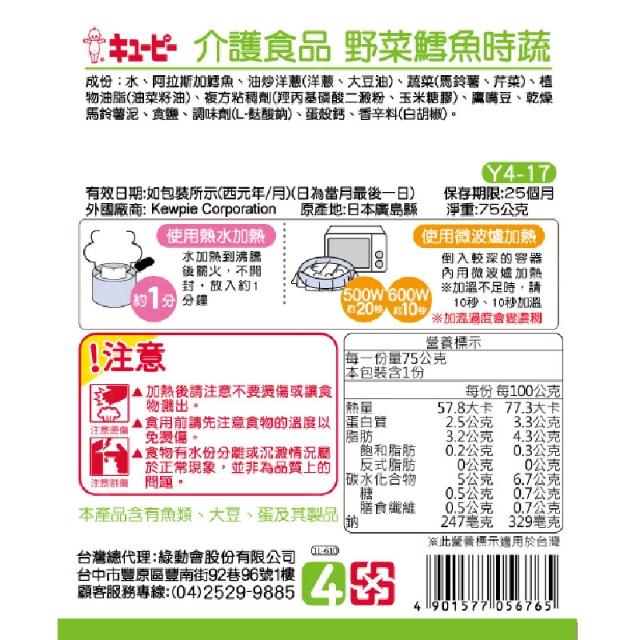 艾護康 雅膳誼 KewpieY4-17 好吞嚥 野菜鱈魚時蔬 介護食 75g/包 流質食品 老人粥 老人食品 即食粥