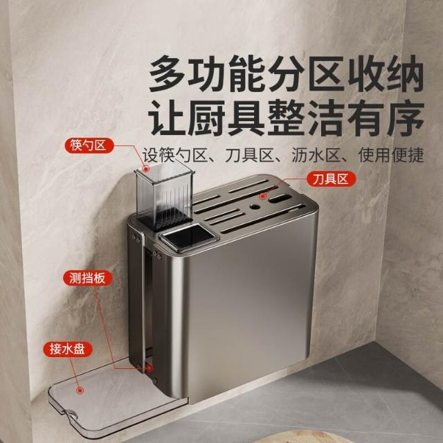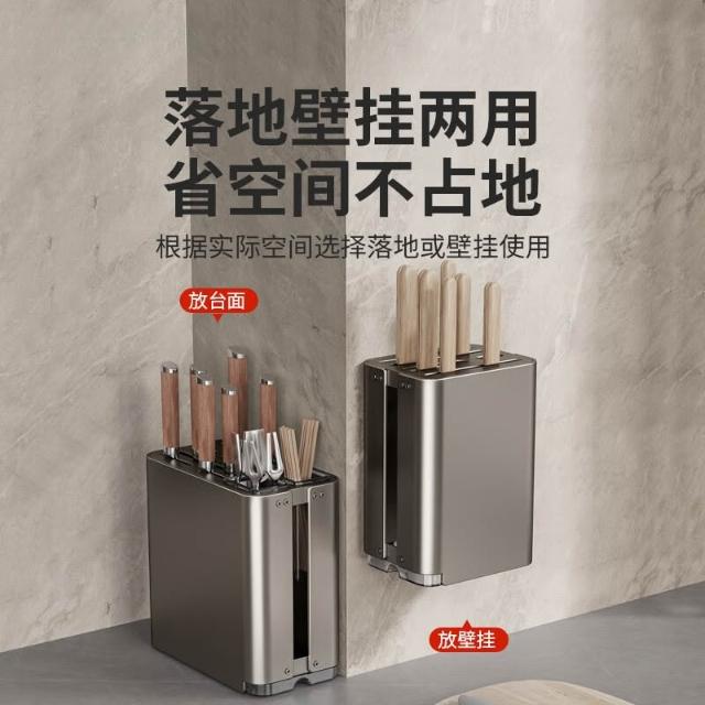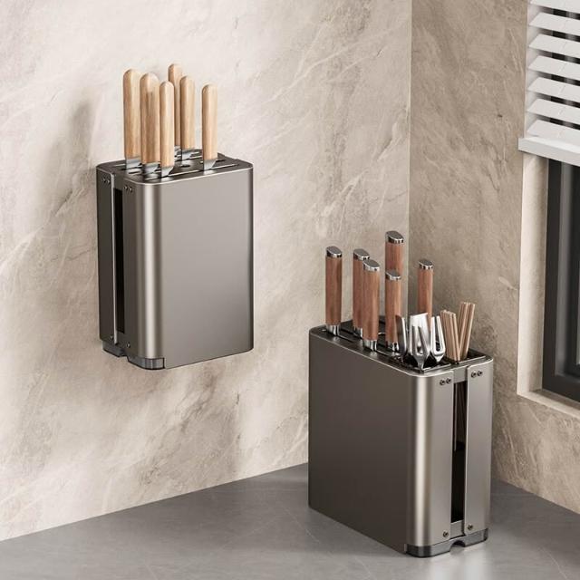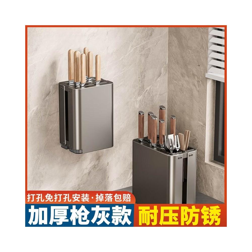 暖巢家居 廚房置物架 壁掛式免打孔刀架 多功能菜刀架 刀具筷子筒一體收納神器 儲物