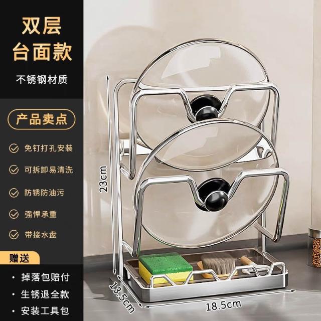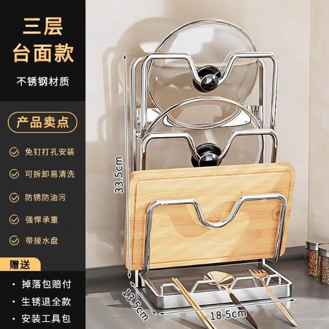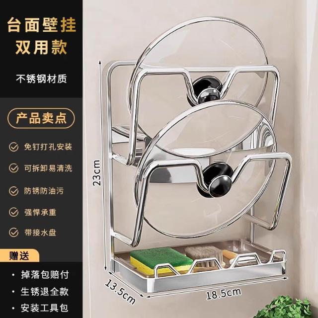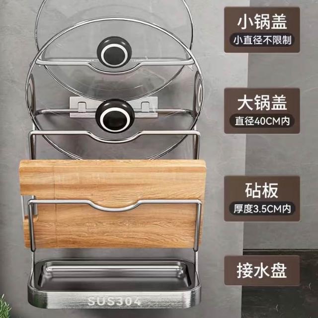 免運 鍋蓋架 壁掛式免打孔儲物架 304不銹鋼廚房置物架 家用菜板砧板多層收納神器