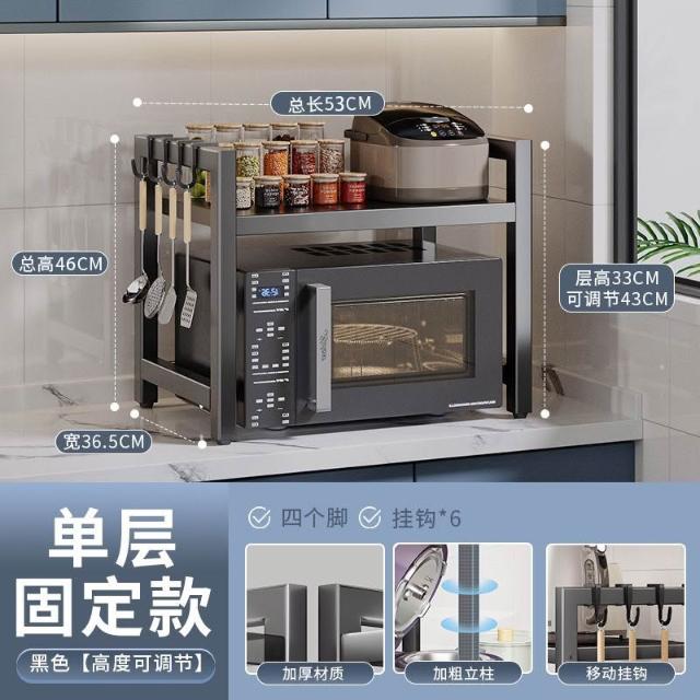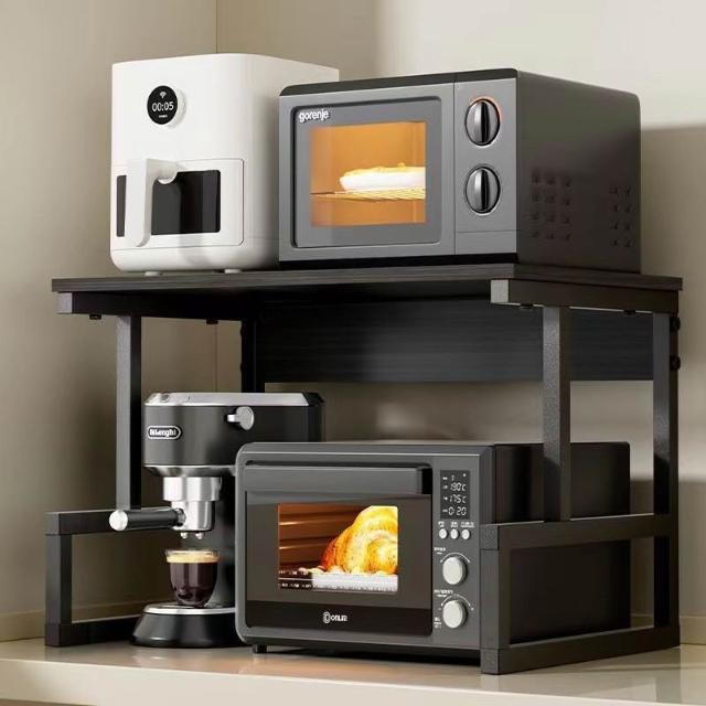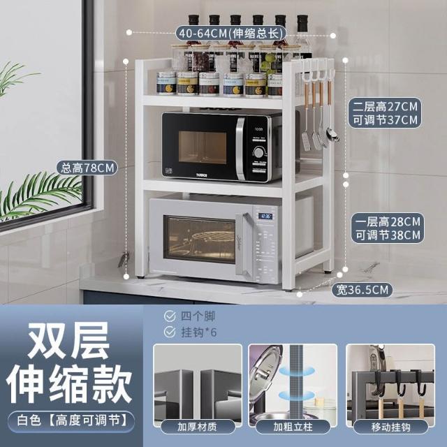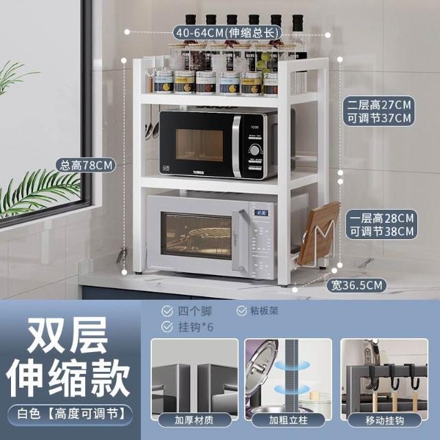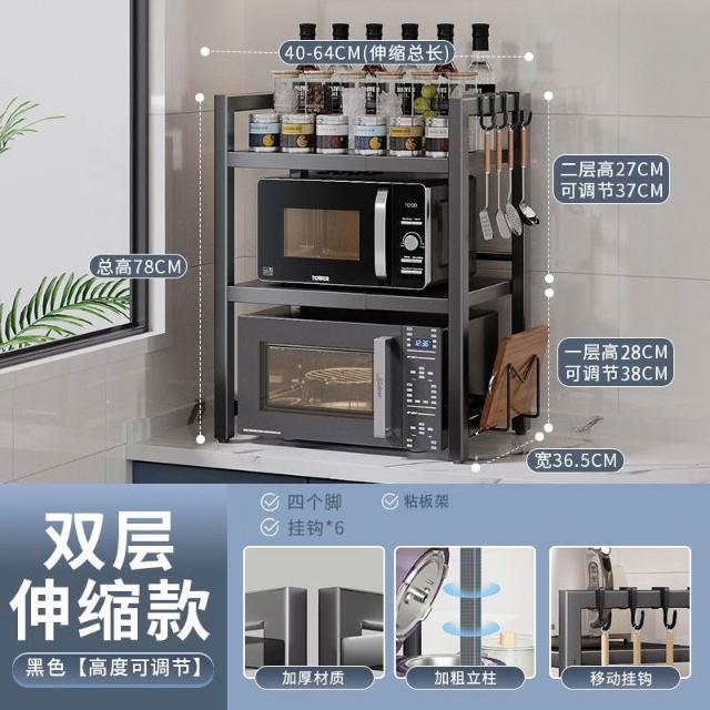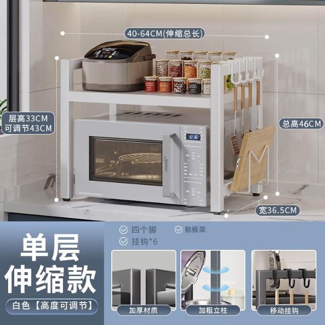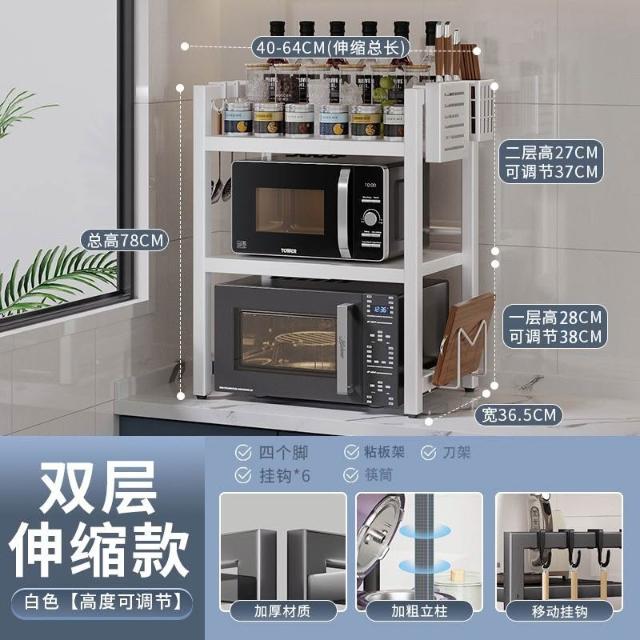 暖巢家居 落地伸縮微波爐置物架 多層烤箱臺面物品收納架 可調高度廚房儲物架