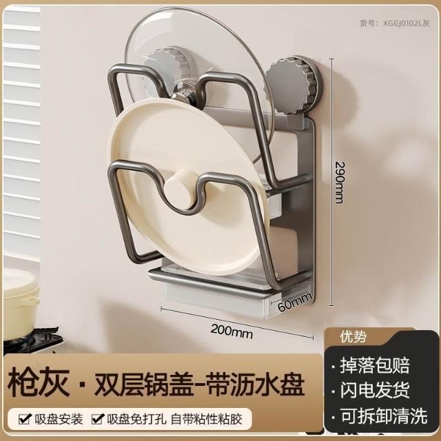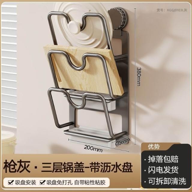 暖巢家居 鍋蓋架子 壁掛免打孔吸盤 廚房置物架 多功能放砧板菜板鍋蓋收納架儲物架子