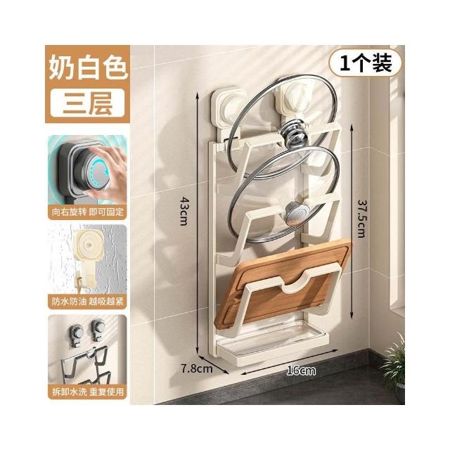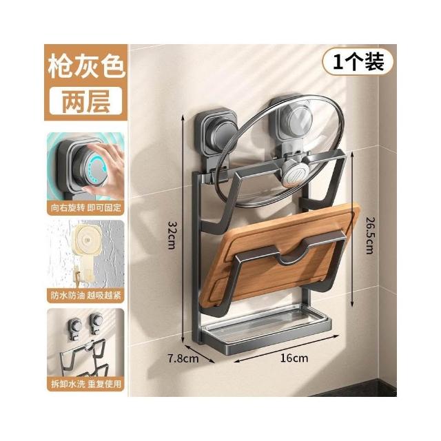 免運 吸盤鍋蓋架 壁掛免打孔廚房置物架 多功能家用收納架儲物架 菜板放置神器 砧板架