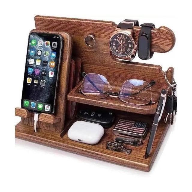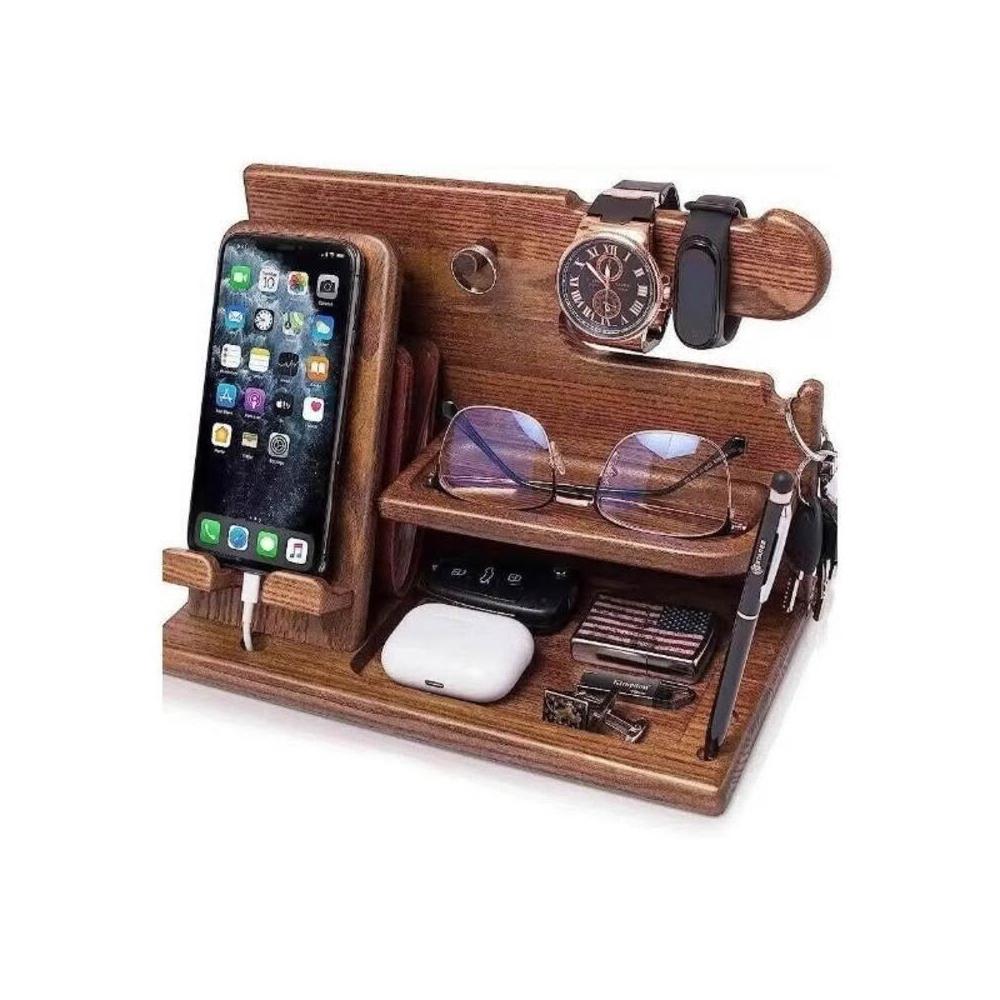 暖巢家居 免運 實木辦公室桌面充電支架 木質手機收納架 手錶多用途玄關眼鏡收納架