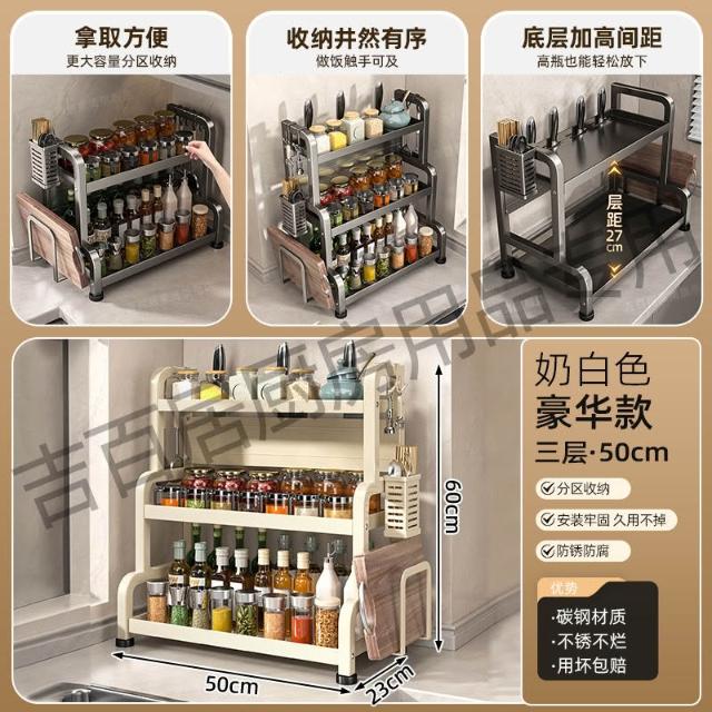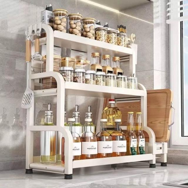 廠家直銷 奶白色廚房臺面調料架 刀架鍋蓋架物架 家用新款多功能收納架