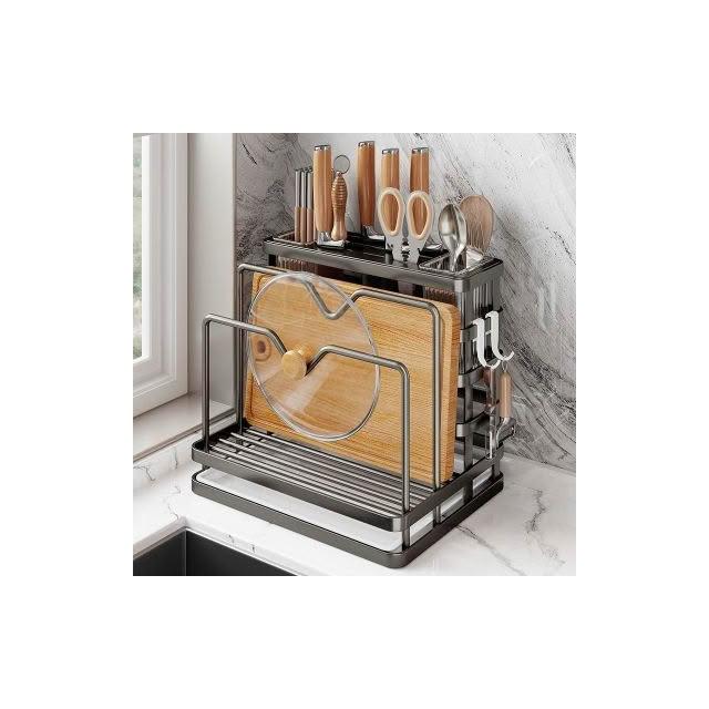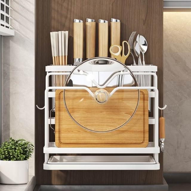 免運 穩固不掉 多功能置物架 家用鍋蓋壁掛式不鏽碳鋼菜板收納架 刀架 廚房刀具架