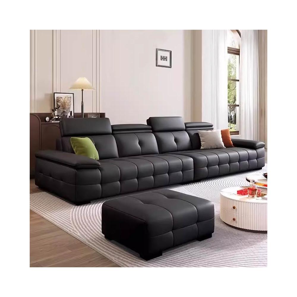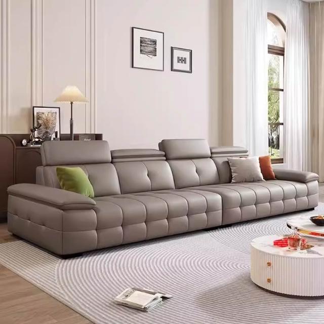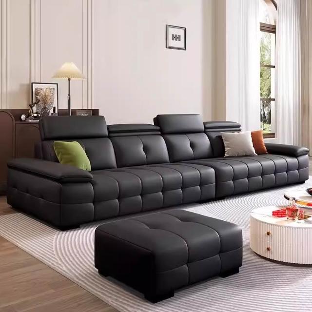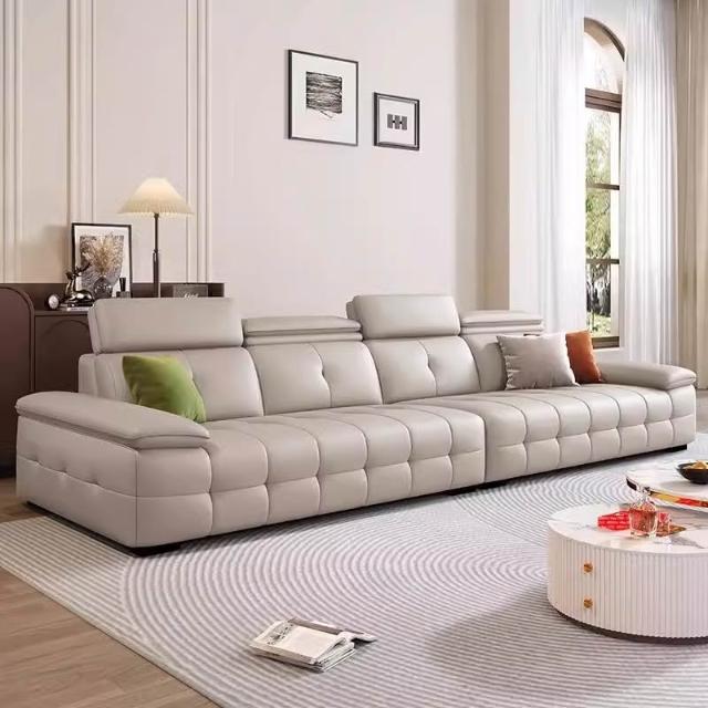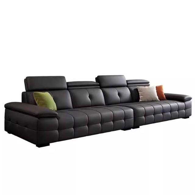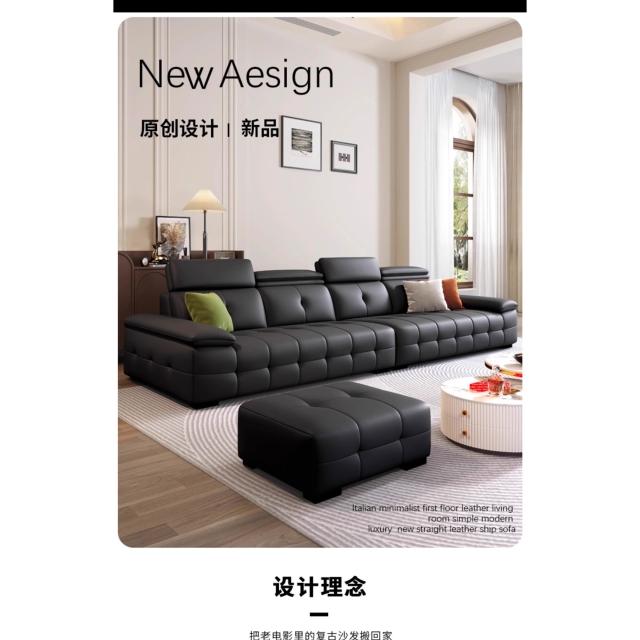 意式極簡勞倫斯真皮沙發輕奢大小戶型客廳現代簡約大黑牛直排沙發