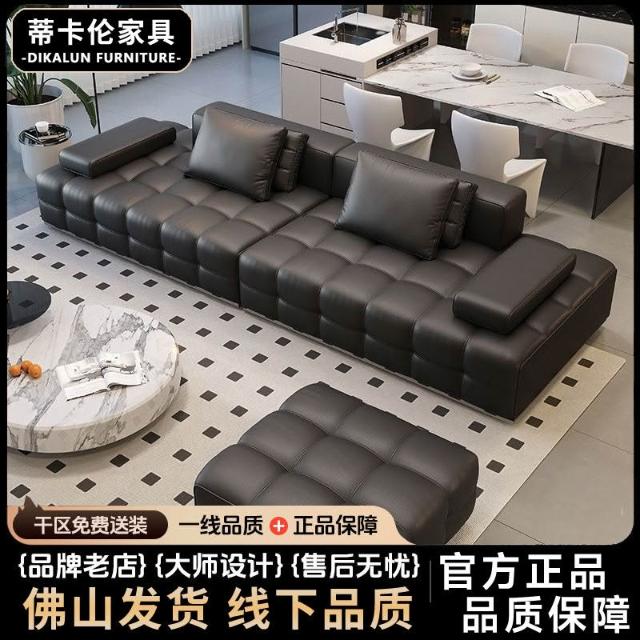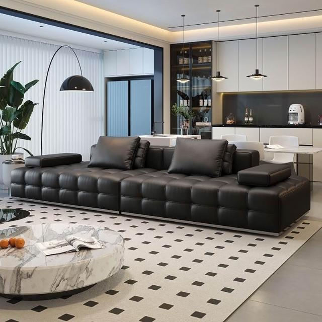 勞倫斯意式輕奢沙發客廳直排超軟設計生態真皮材質現代簡約風格