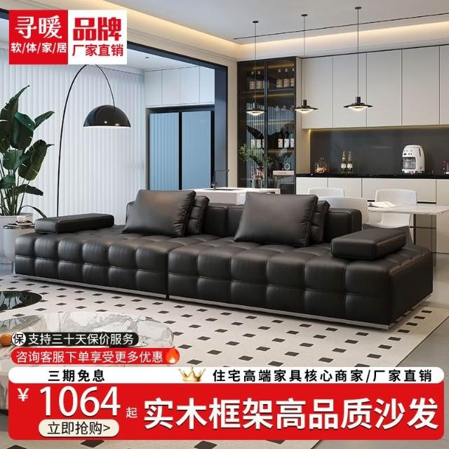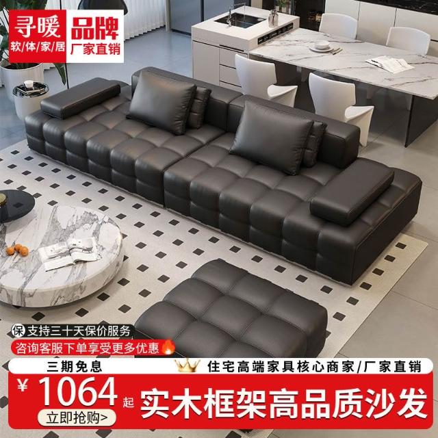 不銹鋼底架 勞倫斯沙發意式輕奢頭層真皮沙發現代簡約客廳直排真皮沙發一整套