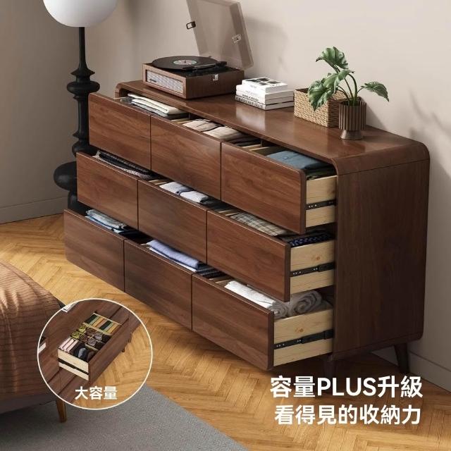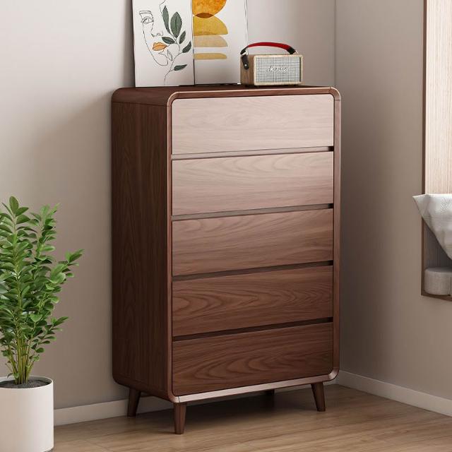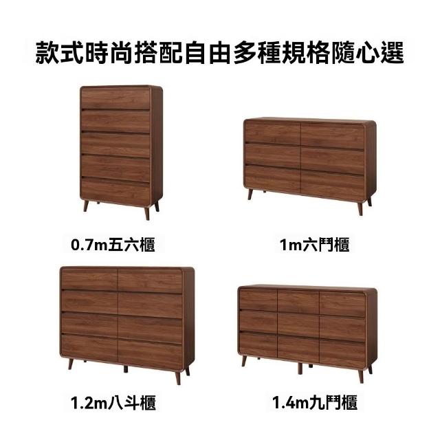 暖巢家居 實木框架斗櫃 六鬥櫃 胡桃色五斗櫃 客廳玄關抽屜櫃 儲物櫃 臥室房間斗櫃 床尾收納櫃 置物櫃