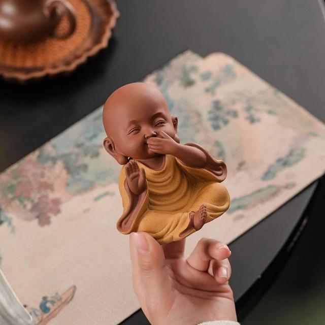 免運 栩栩如生 新中式紫砂禪意四不小和尚 茶寵擺件 博古架 茶臺桌面可愛小沙彌擺設