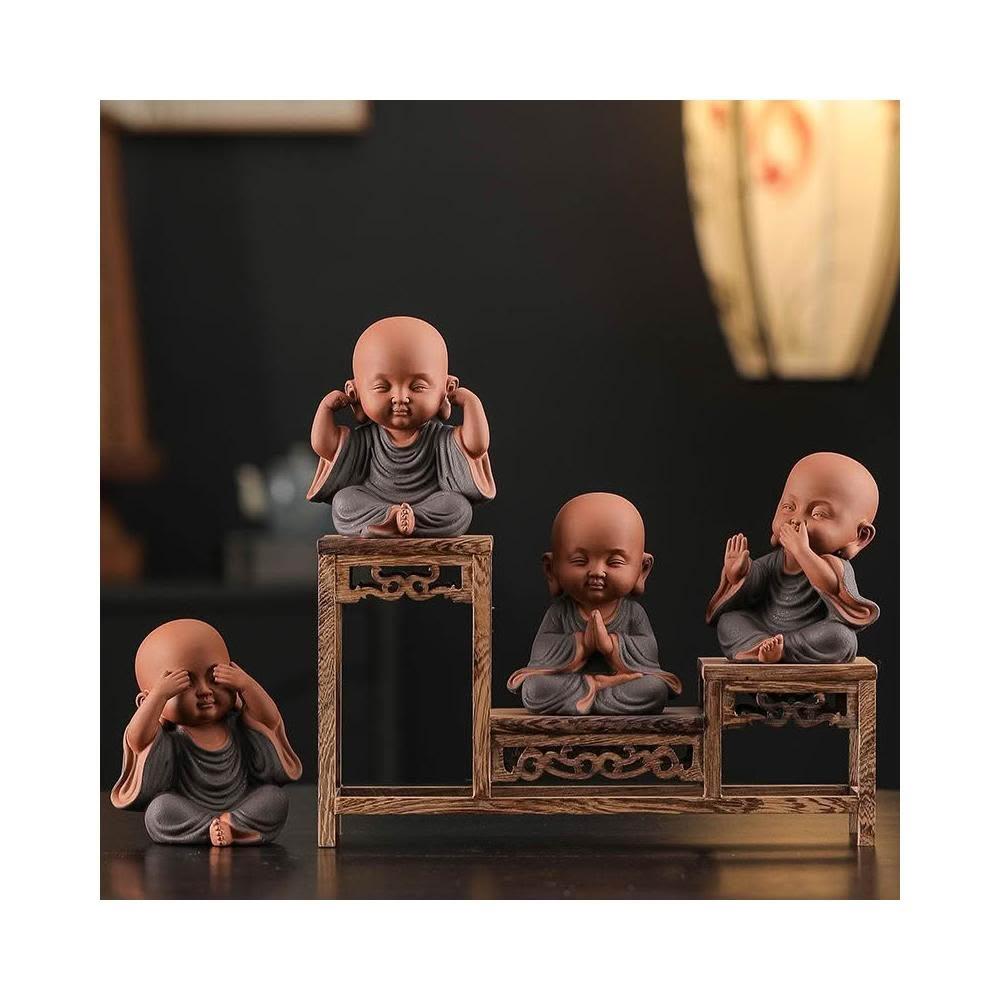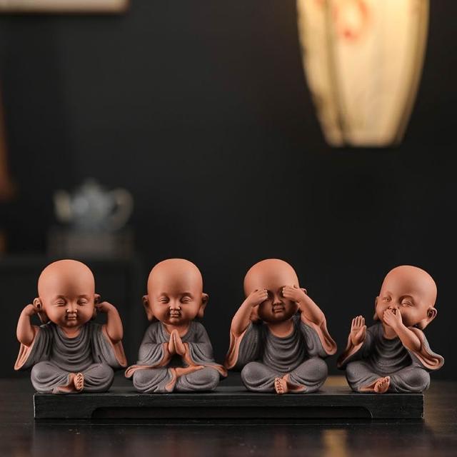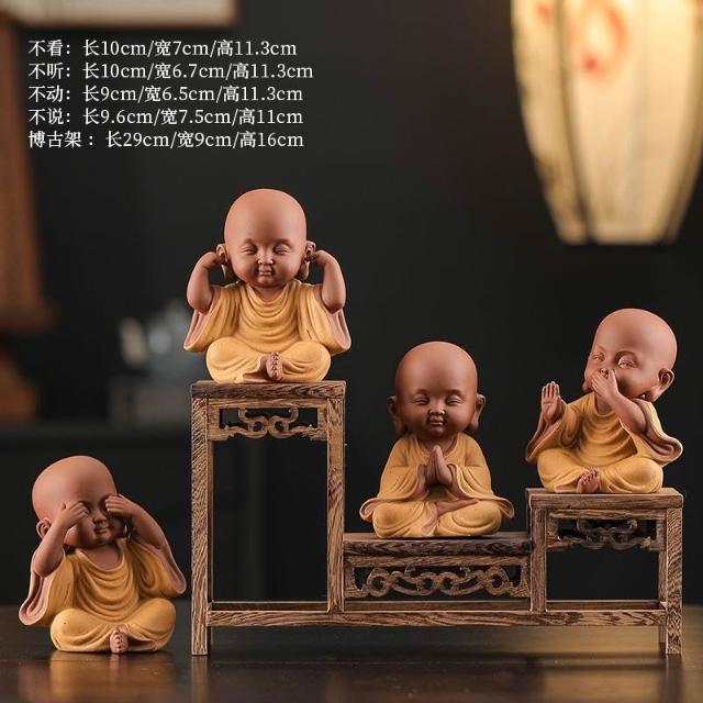 免運 栩栩如生 新中式紫砂禪意四不小和尚 茶寵擺件 博古架 茶臺桌面可愛小沙彌擺設